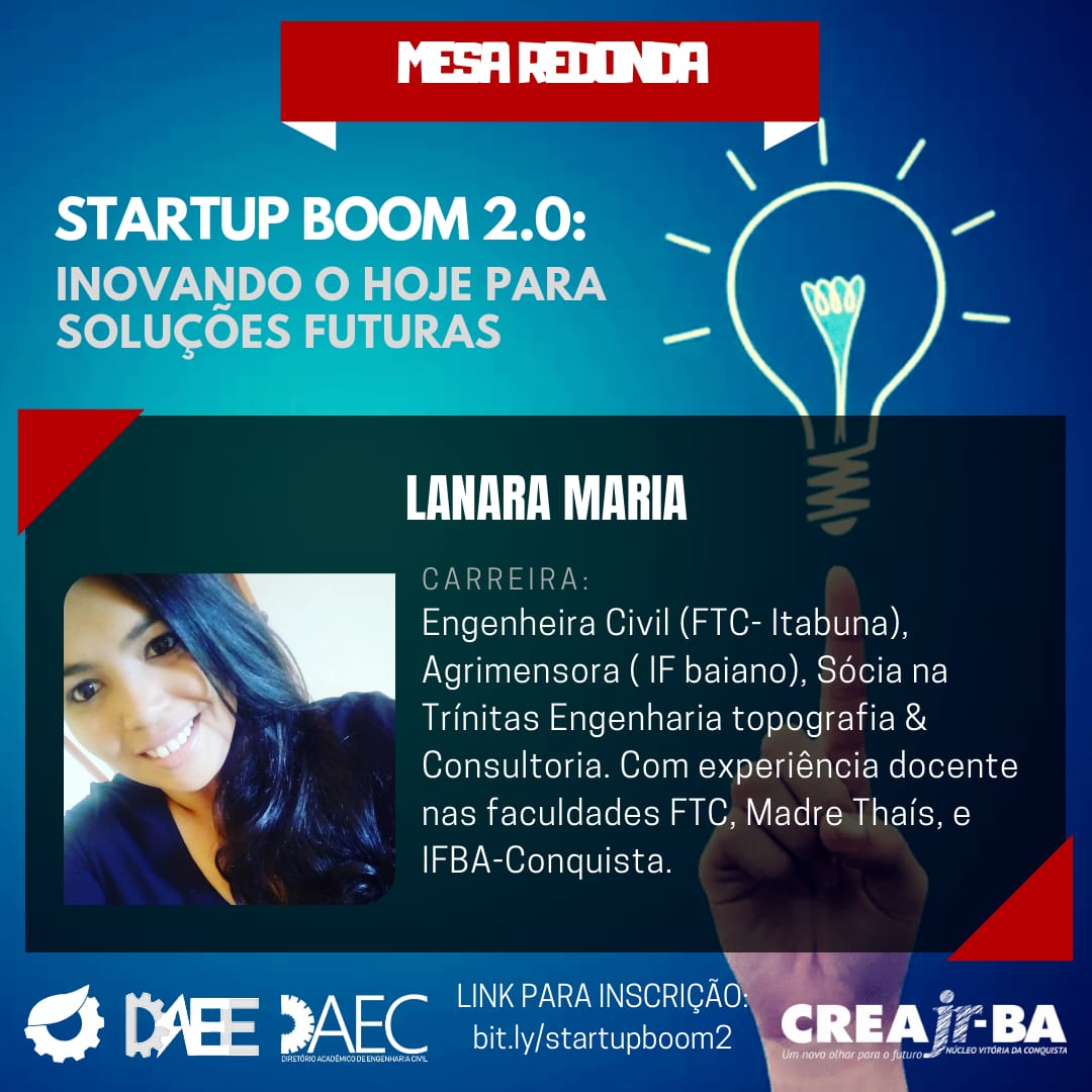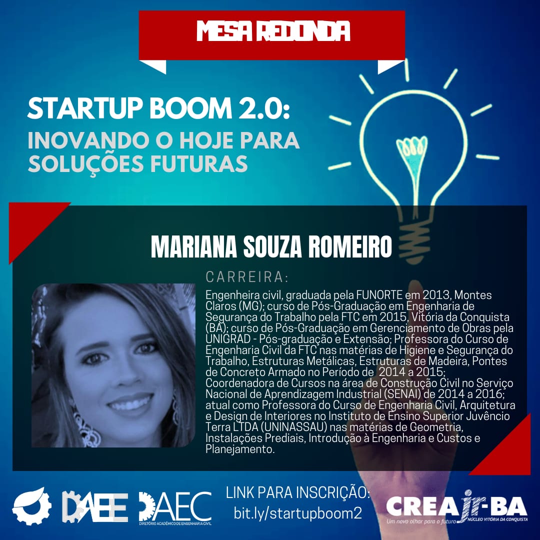 Uma dessas ações será o evento Startup boom 2.0: Inovando o hoje para soluções futuras que acontecerá no dia 14 de dezembro (sexta-feira), às 19h, no auditório principal do IFBA, Campus Vitória da Conquista.